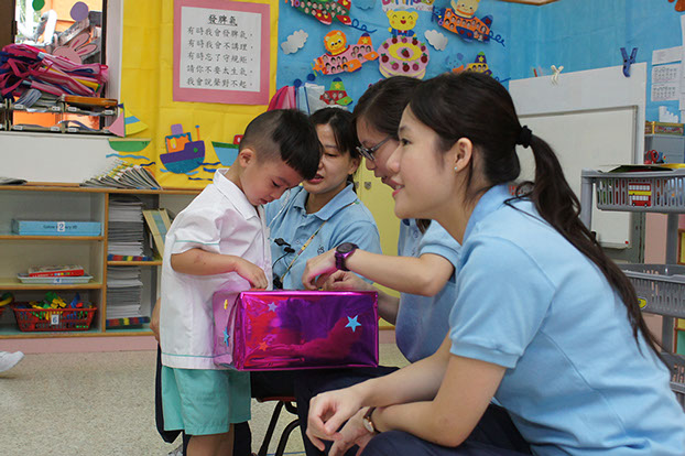 8月27日是幼兒班的開課日,家長陪同幼兒一起到校,他們歡歡喜喜進入課室。上課前先由校長甘麗貞修女透過視像歡迎各位家長及幼兒,跟著老師利用手偶和歌曲與幼兒打招呼,又以遊戲的方式派發組別名牌給幼兒,最後還拍攝組別相作留念。幼兒在短短的一小時內感受上課的樂趣,為他們兒的學習生活帶來新開始及添上姿采。