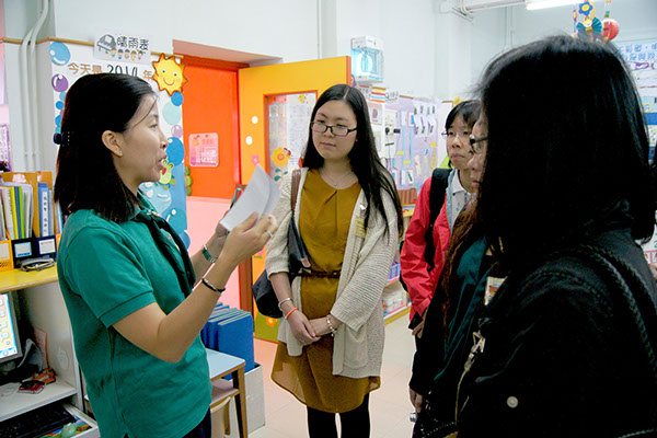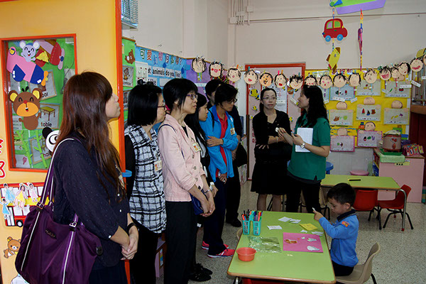 2014年11月7日 (星期五) 合一堂陳伯宏紀念幼稚園校長與老師共20人到本園觀摩交流,她們欣賞本園在學習環境創設的方面能與教學活動結合,給予幼兒很多創意的空間,課室的角落都充滿互動的氣氛,大家更共同分享課程設計及學習環境引發幼兒主動學習的經驗。