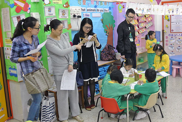 在2014年11月25、26及27日,本園特別邀請高班家長參與一年一度的「家長觀課」活動,讓家長到校觀察子女的學習和活動情況,家長很欣賞和認同學校的教學模式及方法,重視幼兒靈育和品格的發展。觀課後與老師互相交流教養幼兒的心得,很高興看到孩子的自主、自律和專注方面有很大的進步,更稱讚老師教學生動有趣,對小朋友的關懷及愛心。