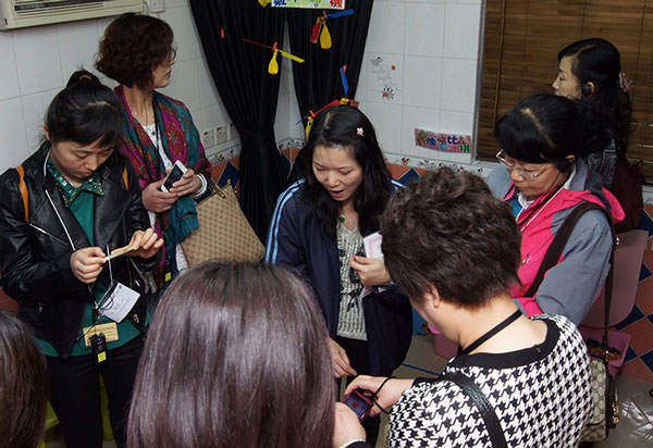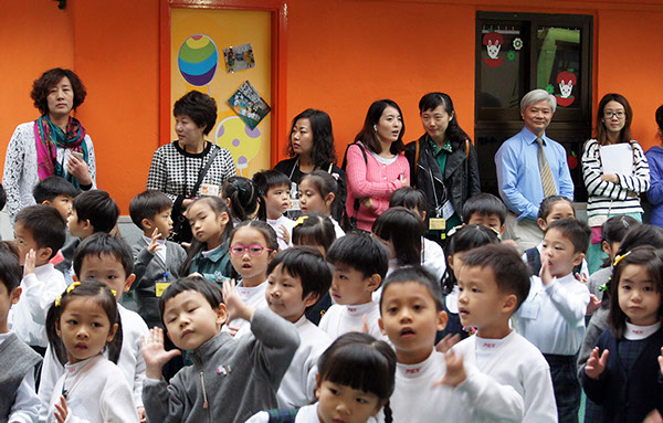 一群參與香港大學教育學院-校長培訓計劃的甘肅省幼兒園園長,於2014年12月1日(星期一) 到本園觀摩交流,大家就兩地幼兒教育方針、行政管理等互相交換意見。同時,本園家長教師會委員代表亦應邀出席,共同分享兩地在「家校合作與家長教育」社會文化差異,而本園的環境設施、校園文化和學生表現,更給她們留下深刻的印象。