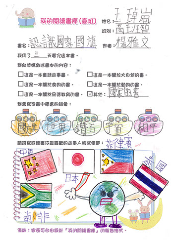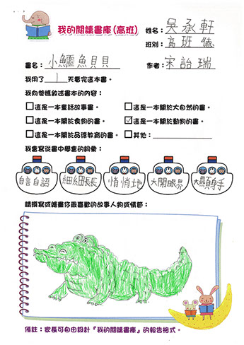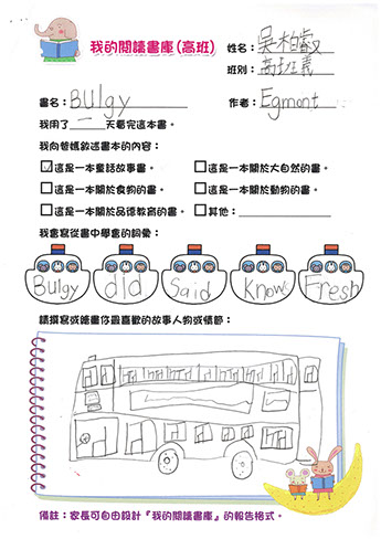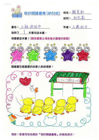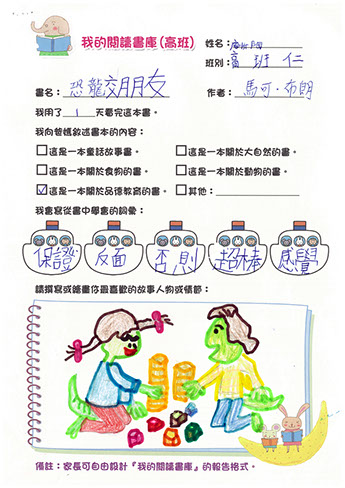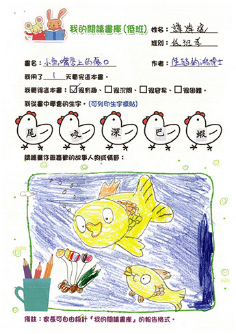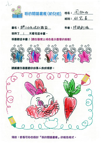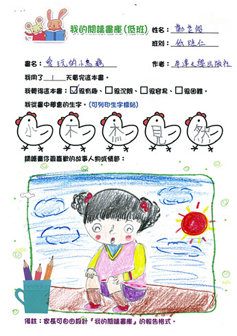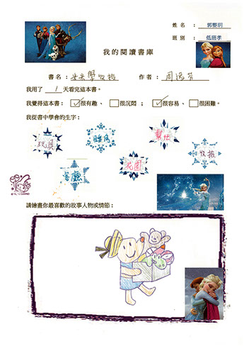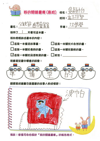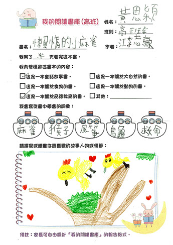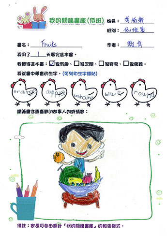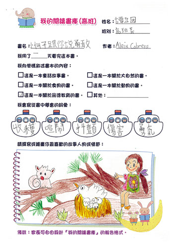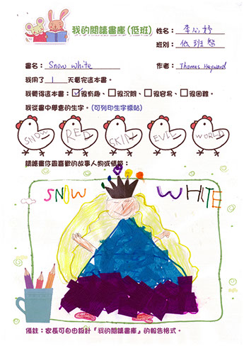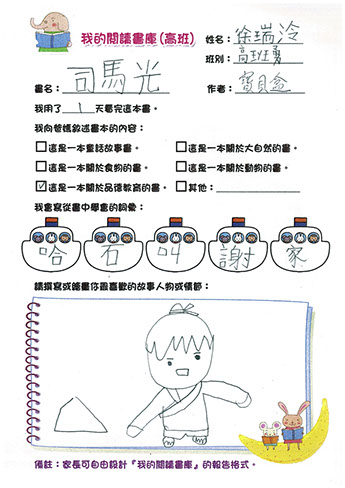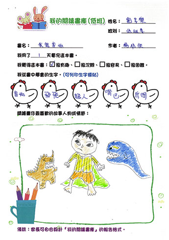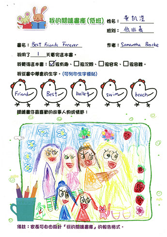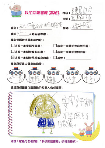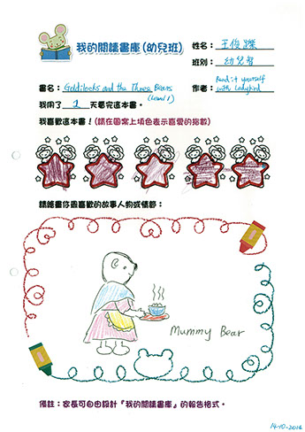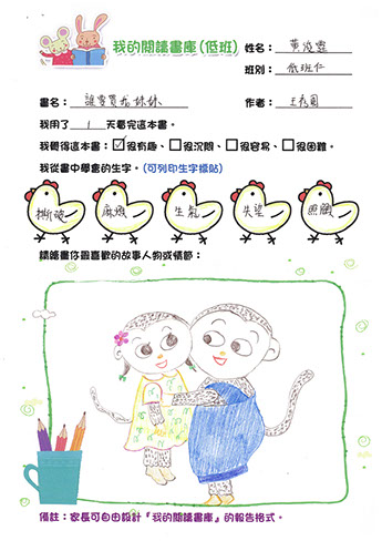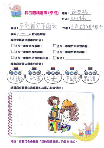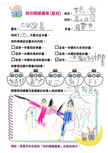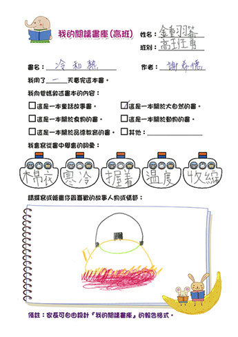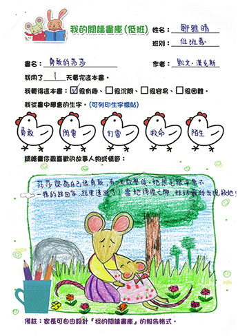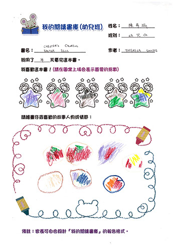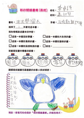 此外,感謝家長積極參與閱讀計劃,並用心地設計別具一格的《我的閱讀書庫-閱讀報告》,為孩子建立愛書人的好榜樣。