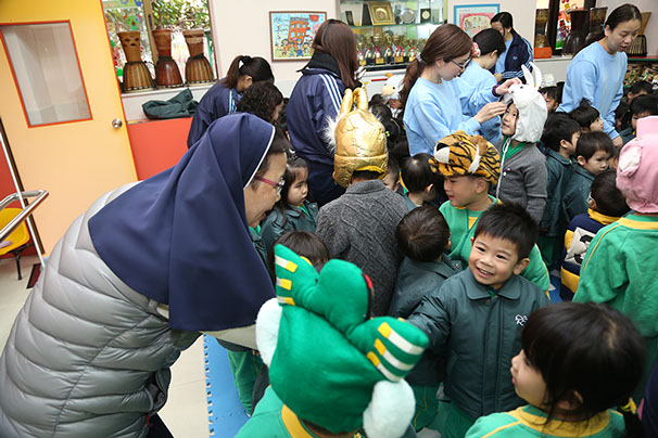 2015年3月12日為四旬期禮儀,今年四旬期的主題為「獻身生活年」,由於天雨關係,我們改在學校舉行。 當日透過話劇《諾厄方舟》, 讓幼兒知道諾厄方舟不只是諾厄及洪水的故事,也是表達天主絕不容忍罪惡,但祂卻保護對祂忠誠的人。天主是仁慈的,只要我們願意悔改,祂一定寬恕我們,並給我們更新的機會。我們也要幫助身邊的人,像天主愛我們一樣。我們一起詠唱「天主經」讚美感謝天主、並互祝平安及奉獻,接著,我們一起默想耶穌的苦路 , 最後我們更以饑饉茶點總 結整天的活動,一起體驗饑餓的感覺,同時讓他們明白幫助弱 小者及珍惜食物的重要性,藉以培養他們有一顆仁愛的心 。