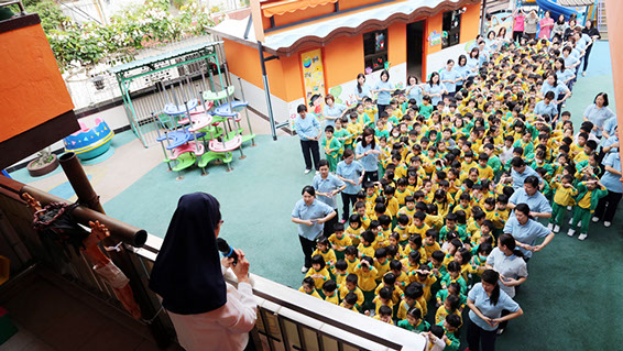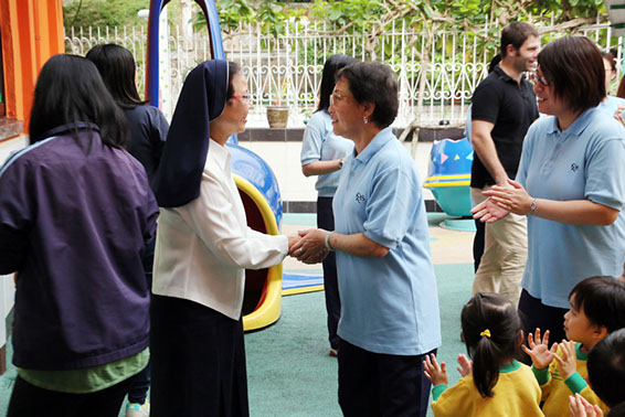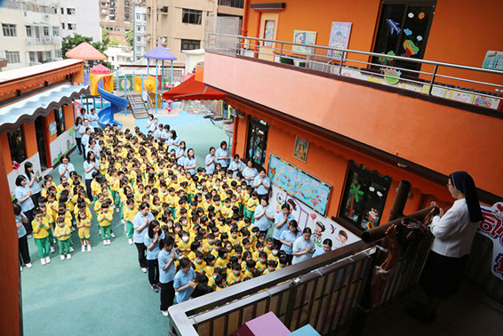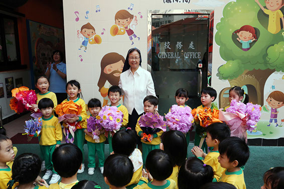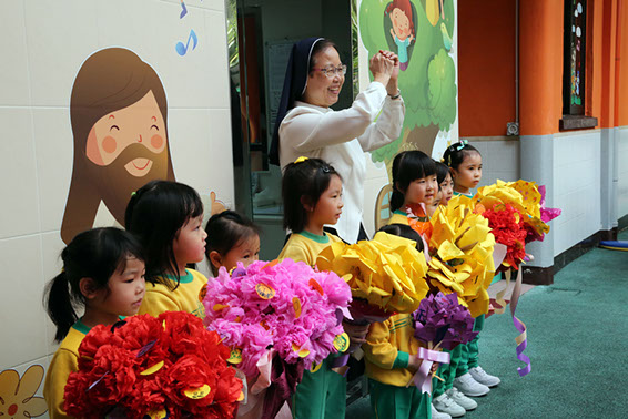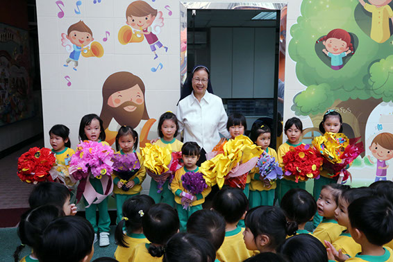 2015年3月19日是甘修女的瞻禮日,我們一眾師生及職員排列成十字架,一起為甘修女慶祝,藉著歌詠及獻花感謝甘修女一年來的帶領及照顧,並祝福她身體健康,主寵滿溢,天充滿喜樂及平安!看!甘修女笑得多麼的燦爛!