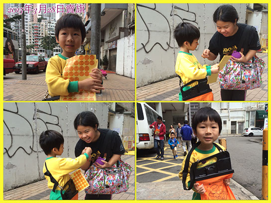 2015年3月28日(星期六)本園獲 “香港青少年服務處 ” 邀請參與其機構之賣旗籌款活動。當日孩子與父母一起賣旗,參與人數有400位之多。是日籌募所得之善款可以幫助弱勢社群解決困難,支持香港青少年服務處精神健康及情緒教育計劃、及非政府資助青少年服務。透過親子賣旗,讓孩子親身體驗「關愛社區」的精神。