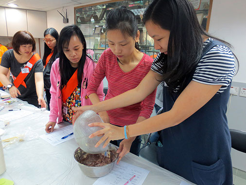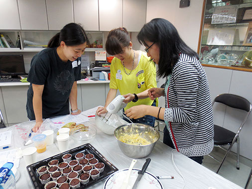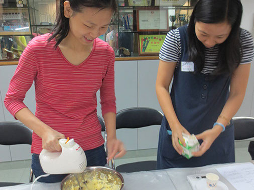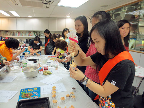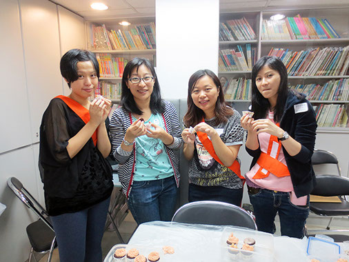 2015年4月25日(星期六)舉行了本年度第一次「家長分享會」,參加者非常踴躍,我們邀請了低班勇學生謝懿芯的媽媽-謝詠儀女士教授製作杯子蛋糕的技巧,首先是講解材料份量及示範製作的技巧;然後各位家長便開始分工合作地動手做,過程十分順利,最後便是替蛋糕唧上美味的忌廉,美味可口的杯子蛋糕便完成了,大家更一起品嚐,這次的分享會令大家歡渡了一個上午。而第二次的「家長分享會」快將舉行,敬請家長們密切留意!