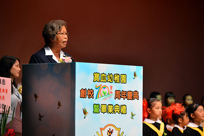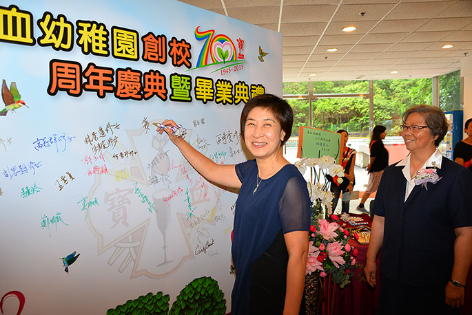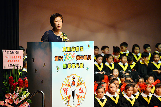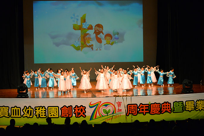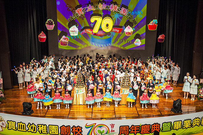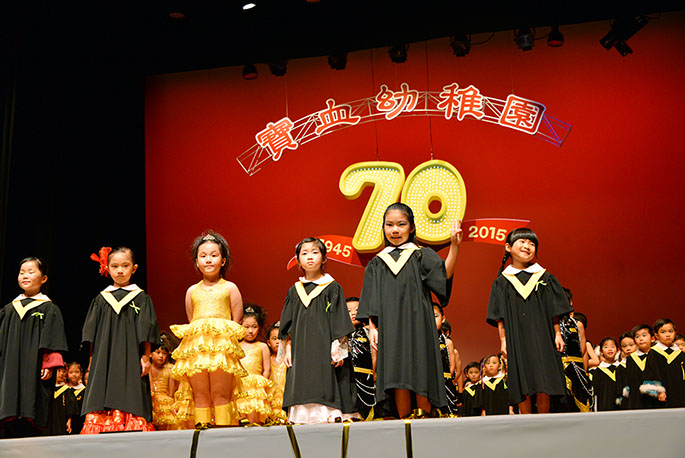 寶血幼稚園於2015 年6月10日舉行創校70周年慶典暨畢業典禮,並在香港浸會大學大學會堂圓滿舉行。本年度畢業生共有186位,當日邀得教育局副秘書長黃邱慧清女士親臨主禮,並為畢業生致勉辭,給予畢業同學一番勉勵,亦見證畢業生邁進人生另一個學習階段。