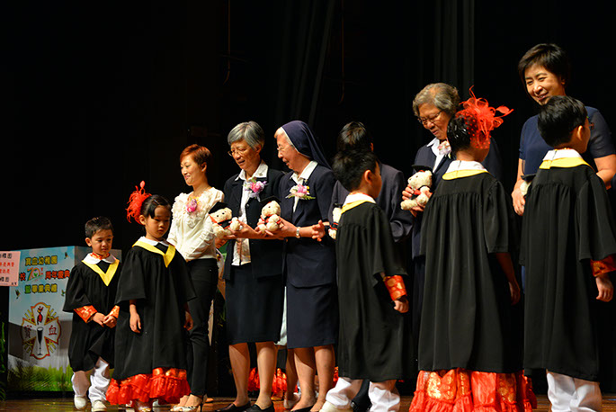 典禮節目環繞著主題《愛‧成就未來》,先由高班勇學生帶領所有畢業生及老師以《我的驕傲》一曲進場,接著更有高班孝的《奇妙恩典》、高班智的《樂影翩翩慶周年》,《活力奇趣繽紛show》、高班德的《積極舞動成長路》及高班義的《星光熠熠明日之星》。為了慶祝我校70周年校慶,我們特別邀請幼兒班及低班小朋友以可愛cupcake造型跳出《愛心滿載迎未來》壓軸表演,並與眾多嘉賓一起分享美味的cupcake。當天所有學生傾力演出,贏得全場的熱烈掌聲及讚賞。